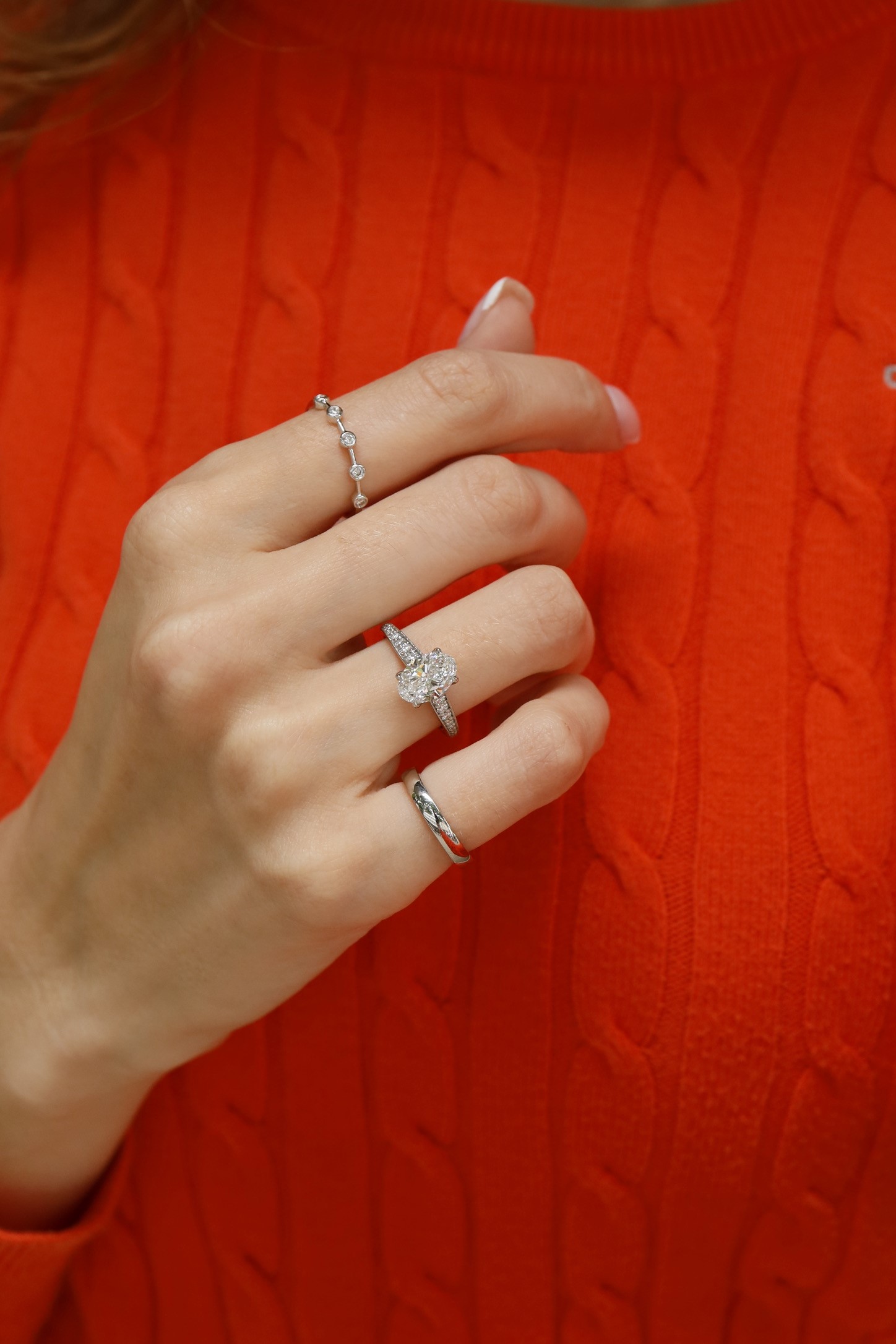 A modern favourite. From above it’s all about that sleek Oval, but underneath lies a hidden micro-halo — a little secret sparkle. Finished with channel-set shoulders for a refined, luxurious feel.