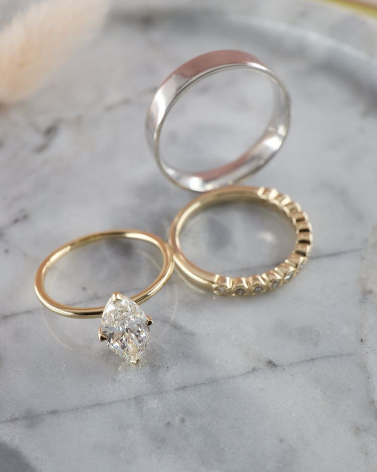 If you're searching for gold wedding ring sets for him and her, explore our collections and discover rings that are modern, meaningful, and unmistakably yours. With worldwide free shipping, Harmony Jewels makes it easy for couples across the globe to find perfectly coordinated bridal sets. We also offer free consultations with our jewellery experts through our social media channels, where our specialists are ready to guide you on design, sizing, gold options, and personalization, no matter where you’re based!